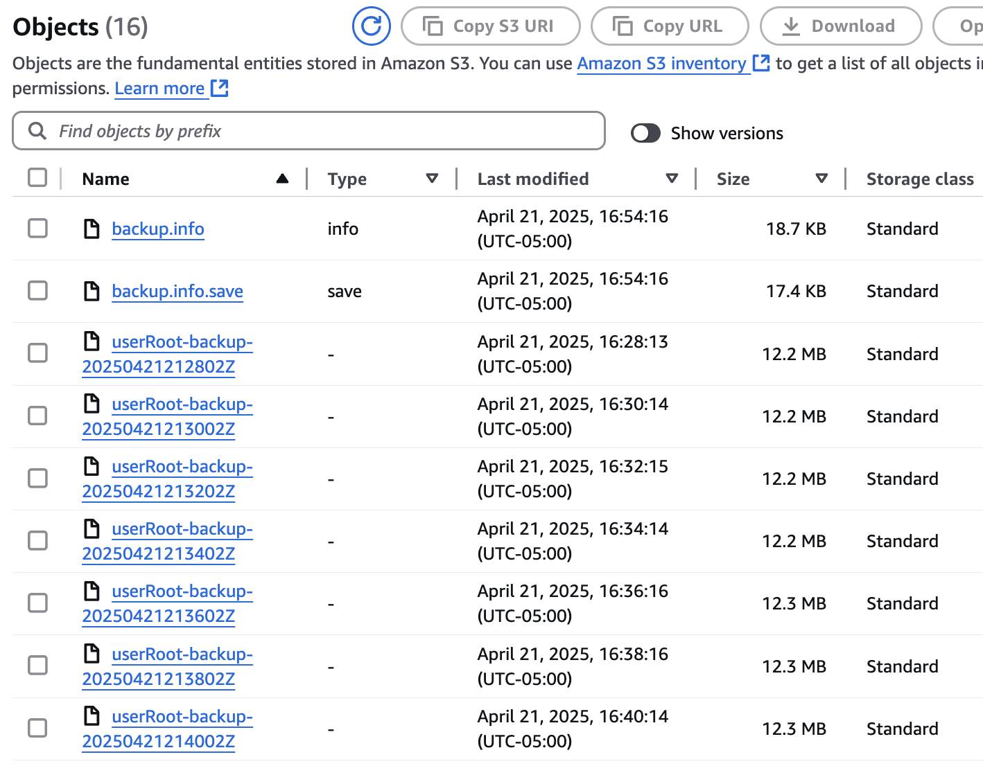download: s3://<bucket-name>/<folder>/userRoot/userRoot-backup-20250421214202Z to ../tmp/restore/userRoot/userRoot-backup-20250421214202Z