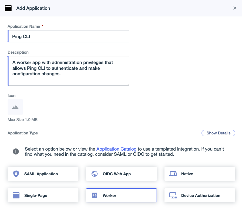 Set a name and an optional description. Make sure Worker is selected as the application type.